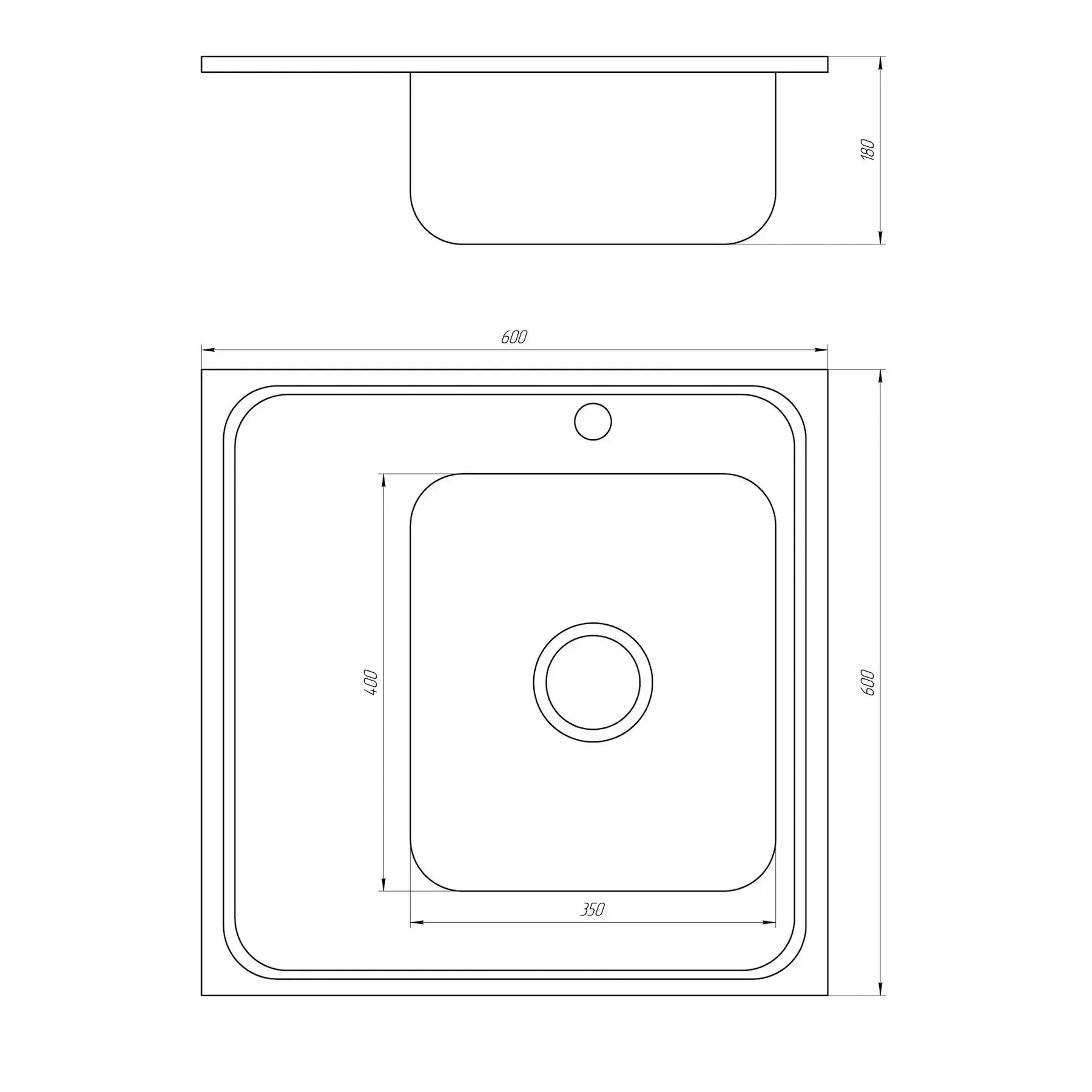 Кухонна мийка з нержавіючої сталі MIRA MR 6060 R D Decor R 600х600 накладна, квадратна, сталь (0,8 мм)