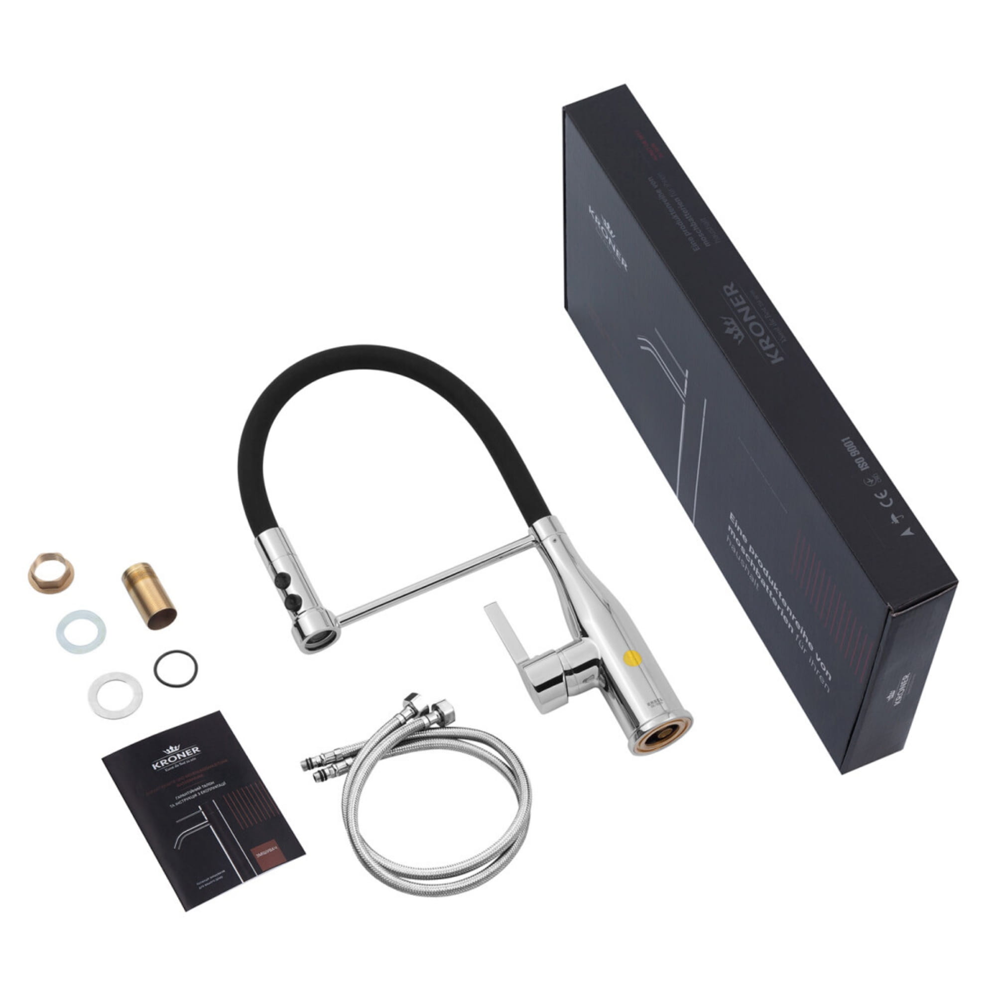 Кухонний змішувач Kroner KRP Ersel C03111BLK одноважільний, хром/чорний (CV033804)