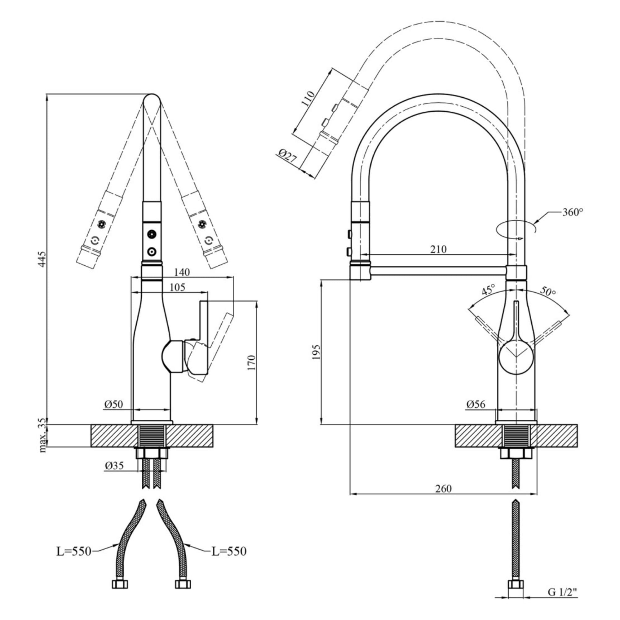 | Висота змішувача, мм | 445 |