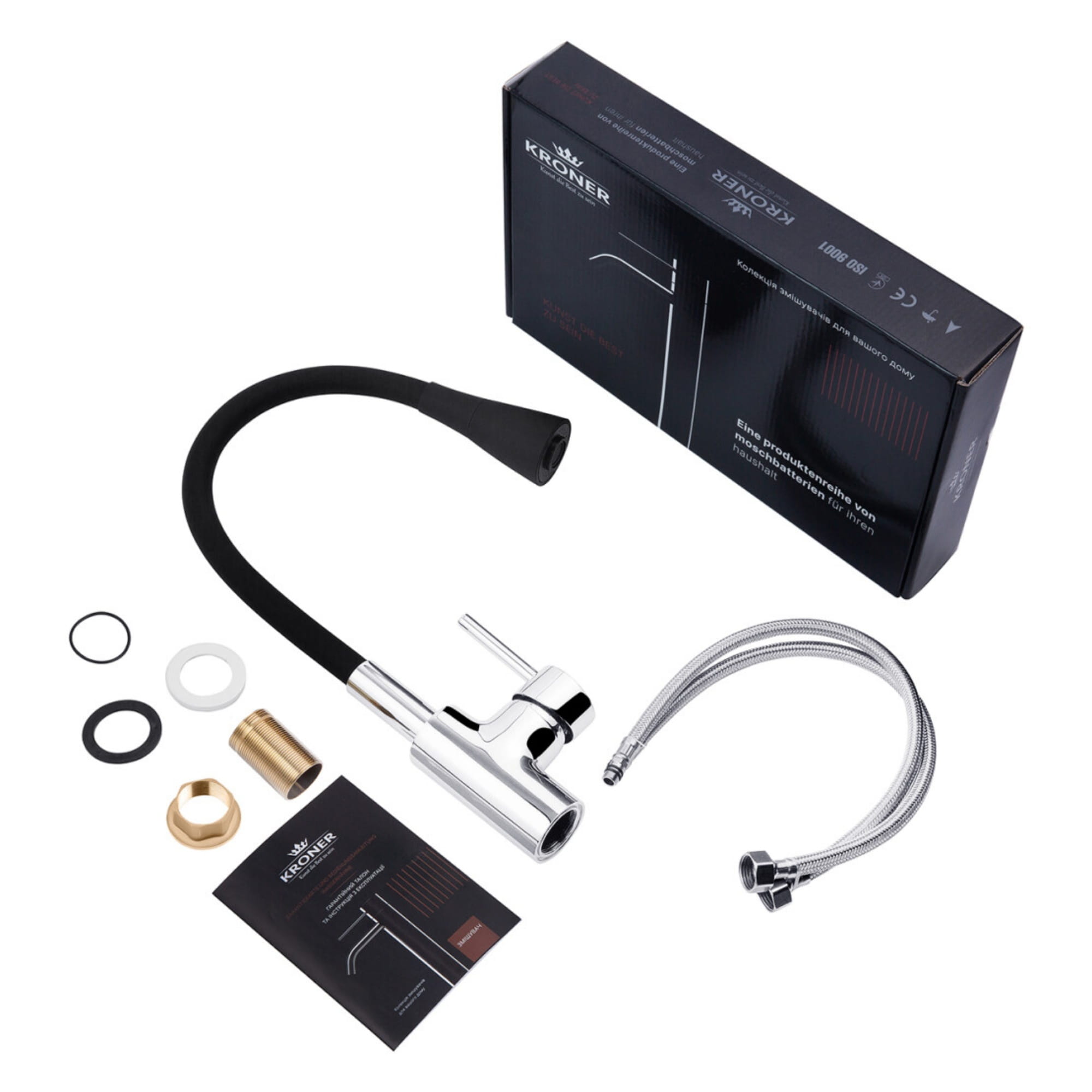 Кухонний змішувач Kroner KRP Küche C031BLK одноважільний, хром/чорний (CV024338)