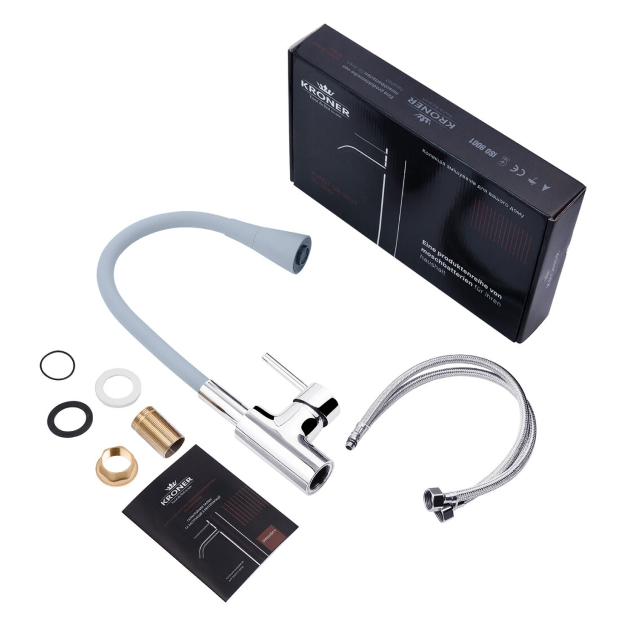 Кухонний змішувач Kroner KRP Küche C031GRA одноважільний, хром/сірий (CV024336)