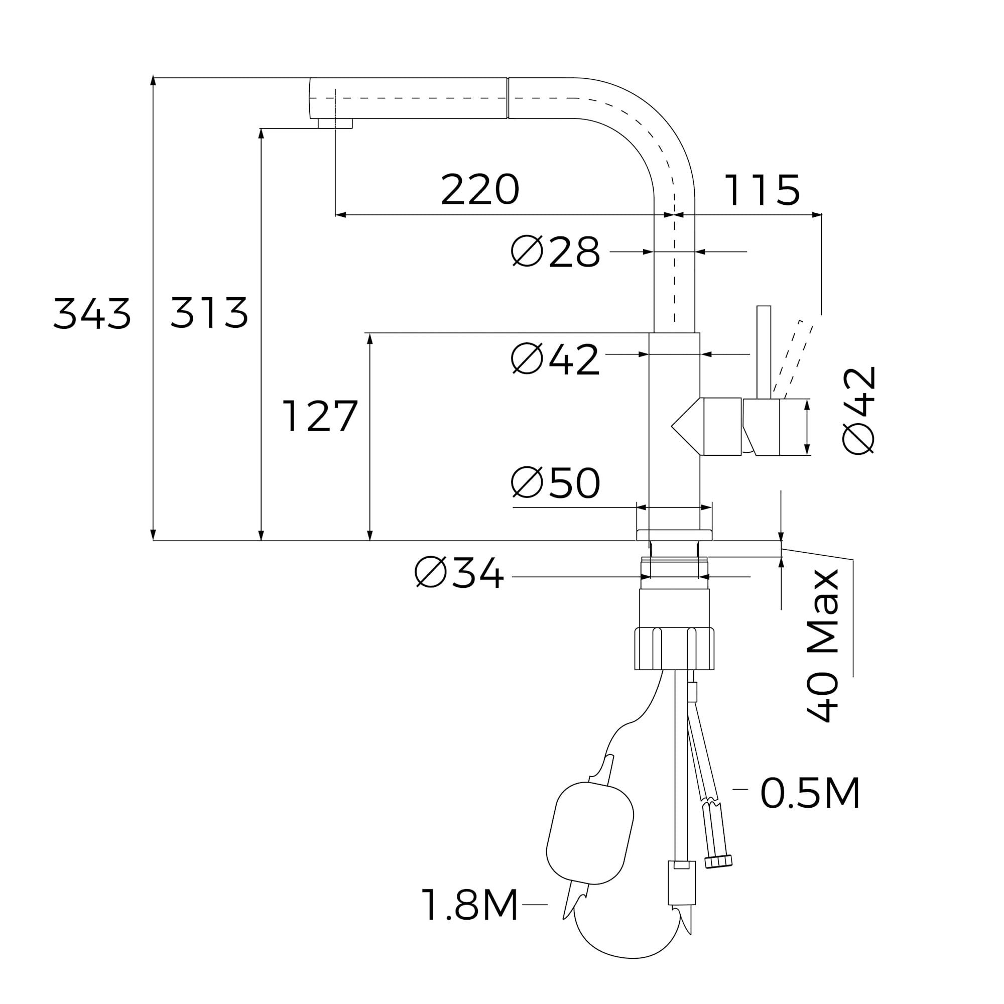 | Висота змішувача, мм | 343 |