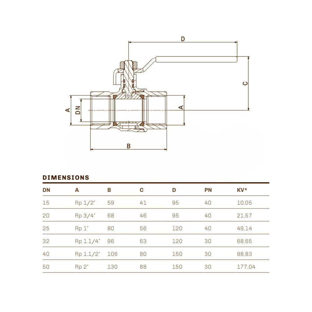 Кульовий кран Bonomi Missouri 2″ ВВ прямий, латунь (79510113)