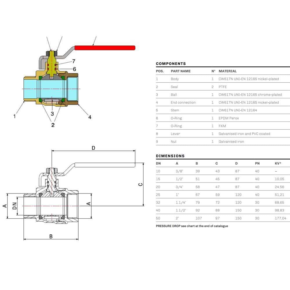 Кульовий кран Bonomi Tamigi 3/4″ ВН прямий, латунь (76050106R)
