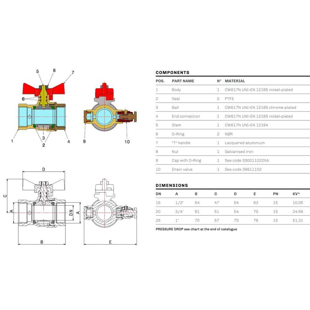 Кульовий кран Bonomi Tamigi 3/4″ ВВ прямий, латунь (76170006R)