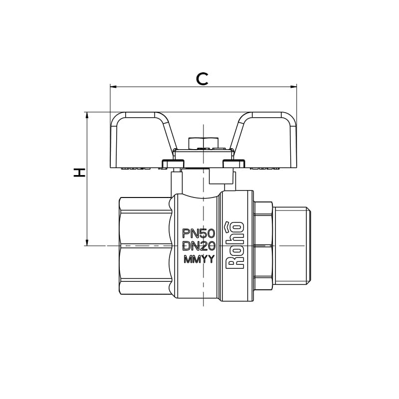 Кульовий кран Roho R101-075 3/4″ ВН прямий, латунь (RO0069)