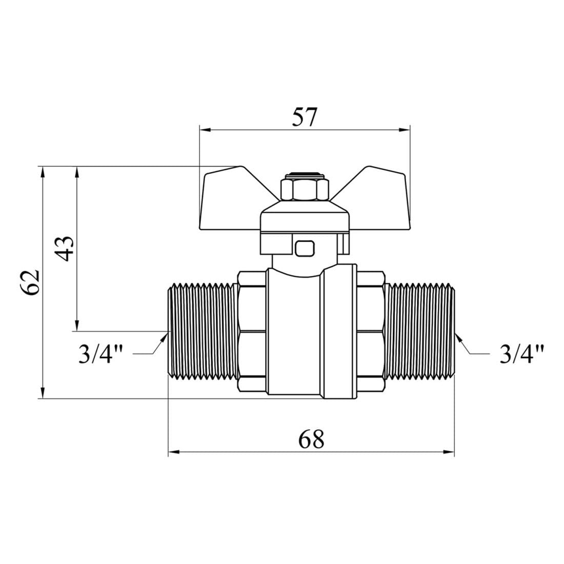 Кульовий кран STA LB 3/4″ НН прямий, латунь (CV022989)