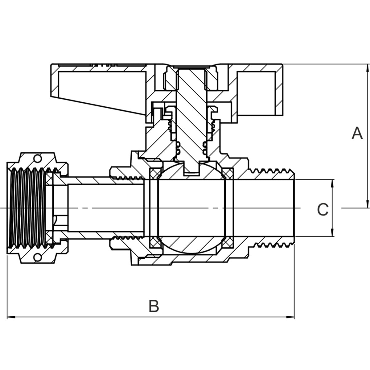 Кульовий кран з накидною гайкою ASG+ 3/4 ВН прямий, латунь (6553025)