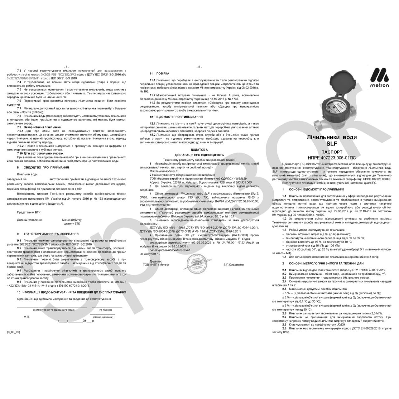 | Тип счетчика | Побутовий |