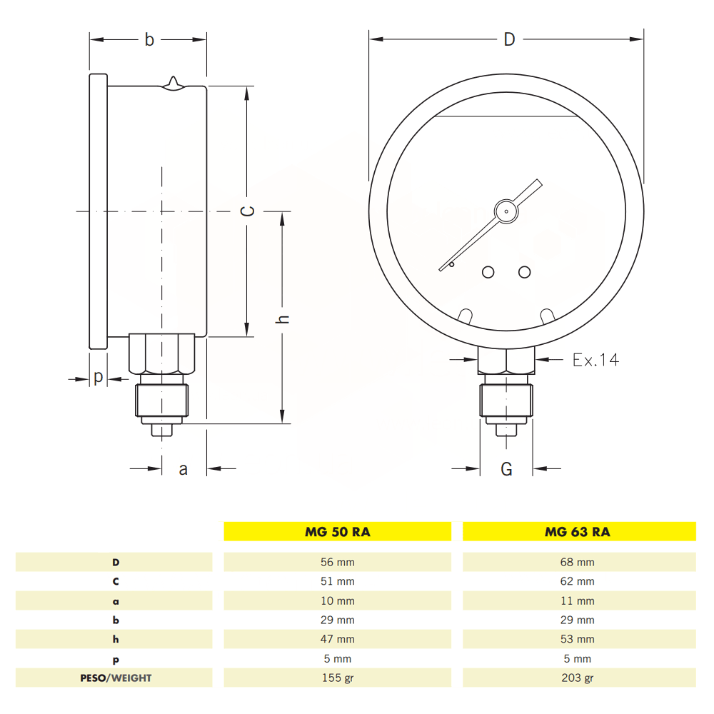 Манометр радіальний Cewal MG 63 MA гліцериновий 1/4″ 6 бар 63мм (91492010)
