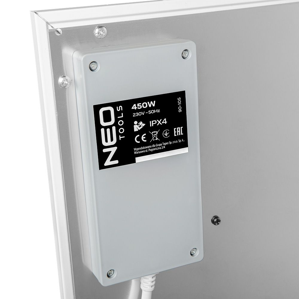 Металевий обігрівач Neo Tools 450 Вт 5 м2 настінний, електронний, білий + пульт ДУ (Wi-Fi) (90-105)