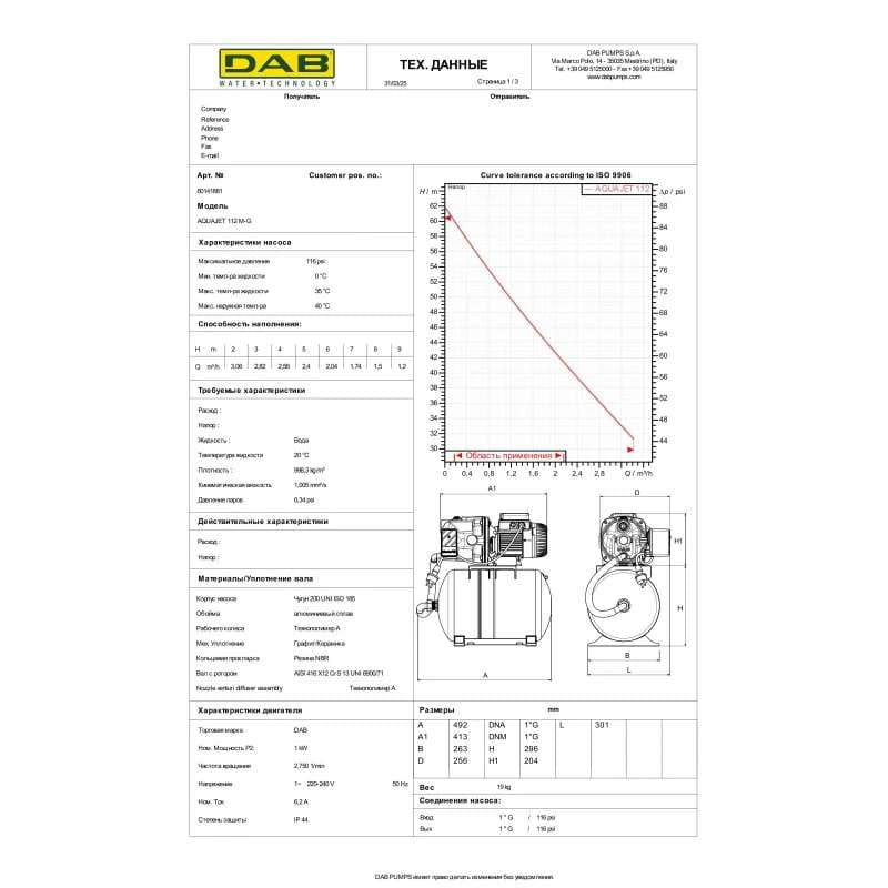 Насосна станція DAB Aquajet 112 M-G 1000 Вт Н 62 м Q 56 л/хв відцентровий, бак 20л (60141881H)