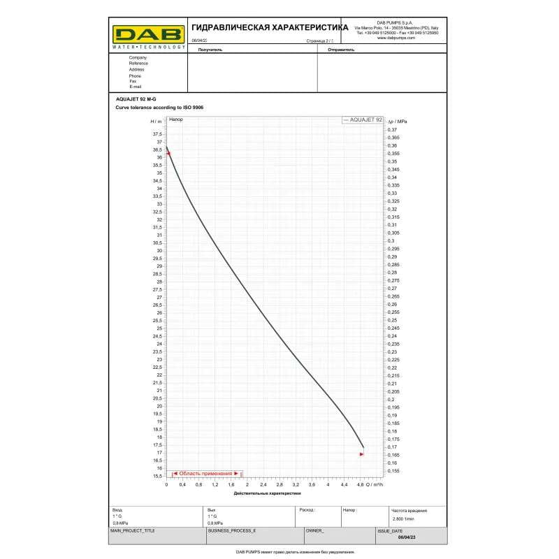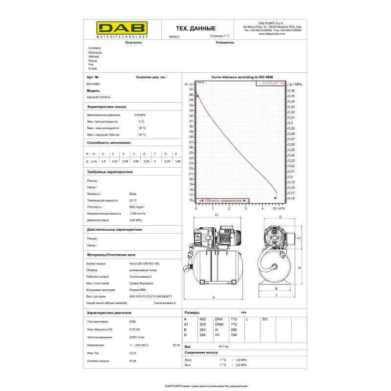 Насосна станція DAB Aquajet 92 M-G 750 Вт Н 37 м Q 80 л/хв відцентровий, бак 20л (60141882H)