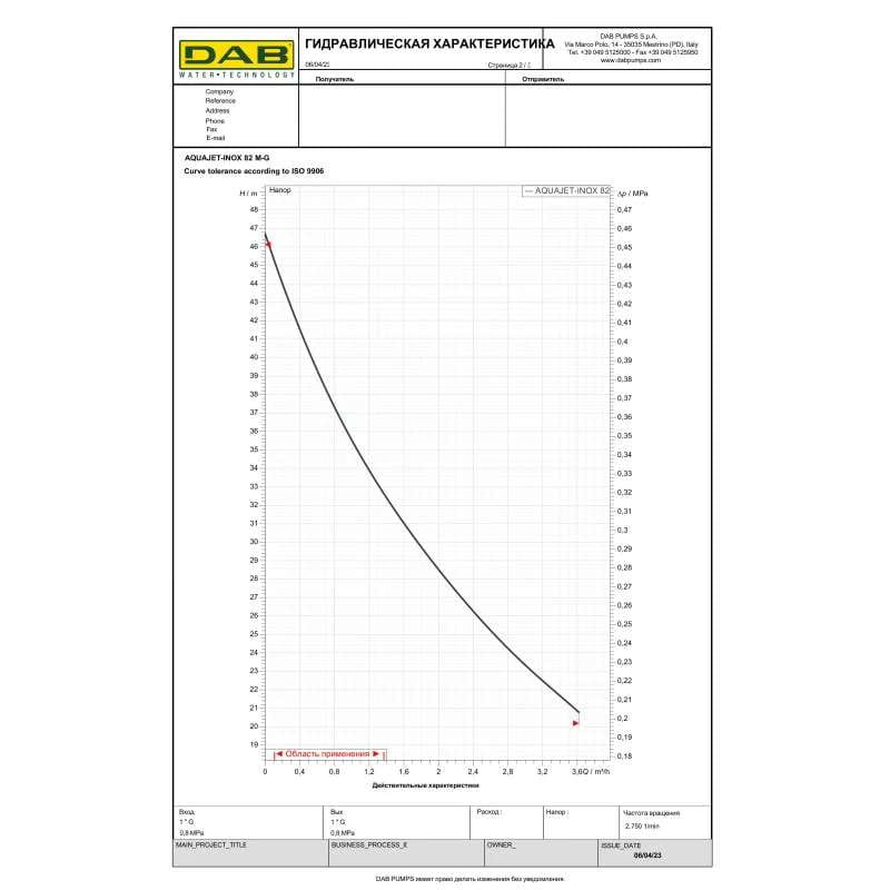 | Максимальний напір води, м | 46 |
