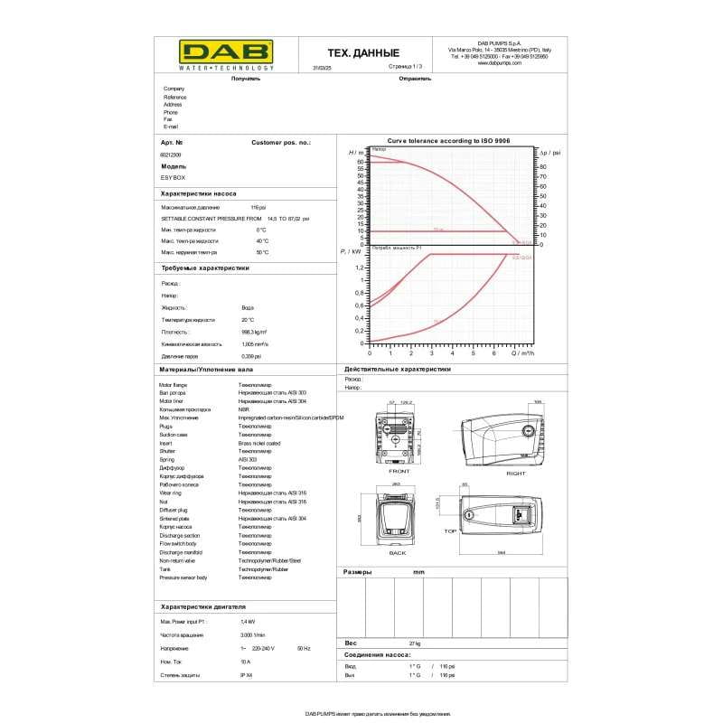 Насосна станція DAB EsyBox 1400 Вт Н 65 м Q 120 л/хв відцентровий, бак 2л (60212309)