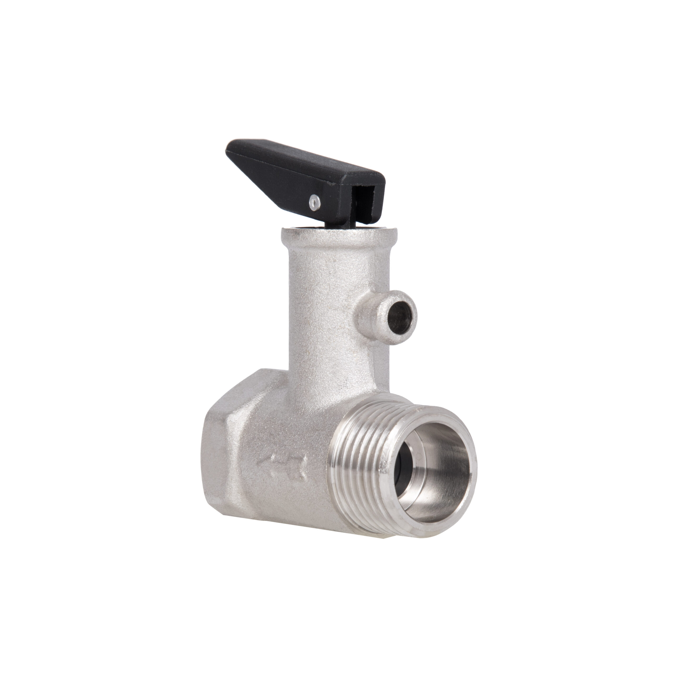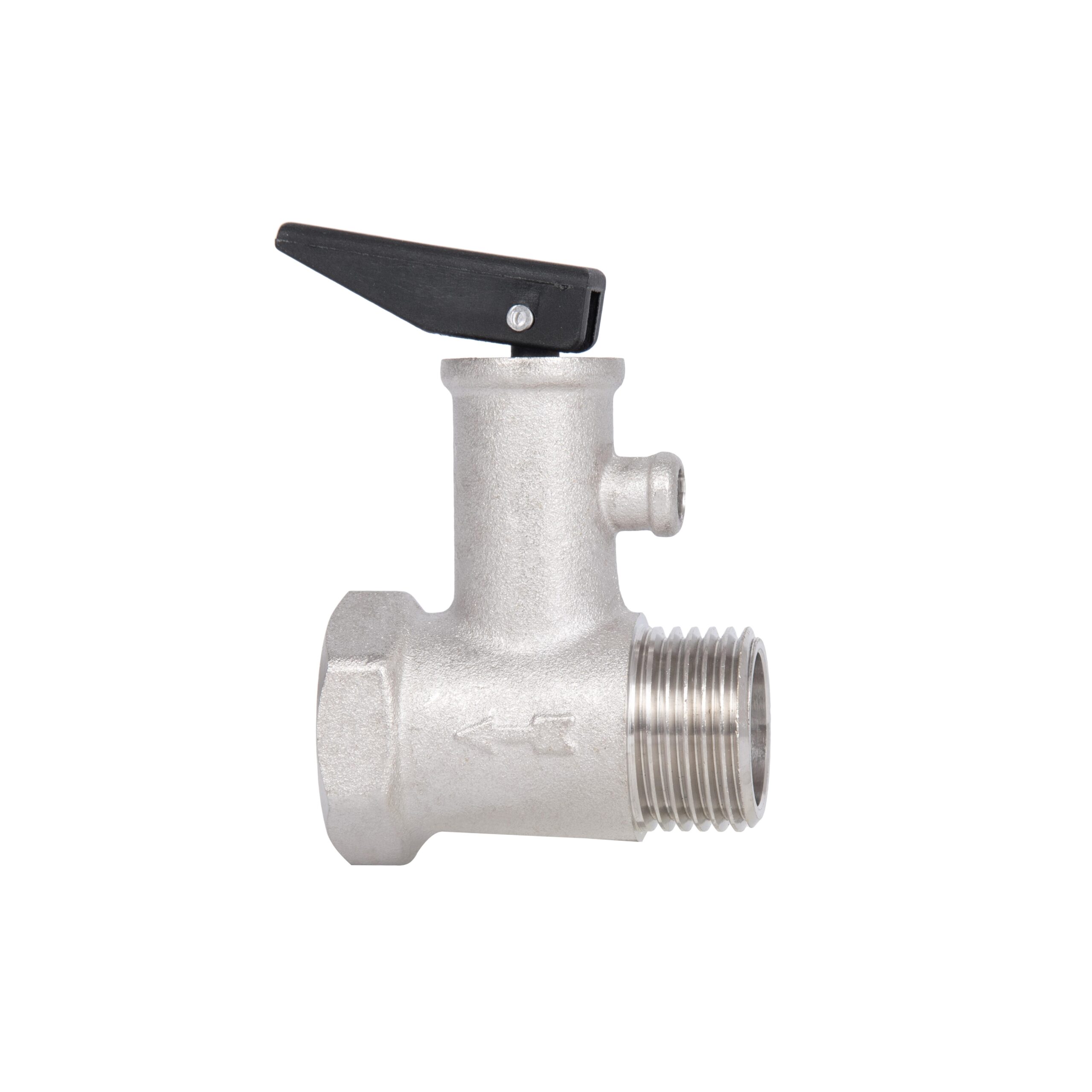 Захисний клапан зворотного скидання з ручкою SD24715R виготовлено з латуні. Є комплектуючим для бойлерів. Забезпечує захист водонагрівача від надмірного тиску в системі, не допускаючи рух рідини назад у нагрівач. Важливо завжди встановлювати підривні клапани для захисту від критичних ситуацій і для продовження терміну служби нагрівальних приладів. Деталь із пластиковою ручкою для ручного (примусового) скидання. Виробництво Китаю.