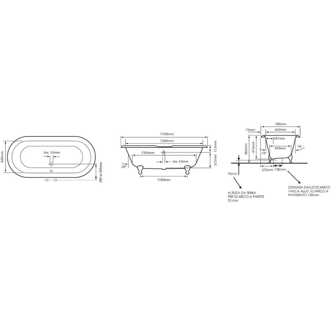 Окремостояча ванна Gaia Dual 170×78 чавунна, біла глянцева (VRG1915BI)