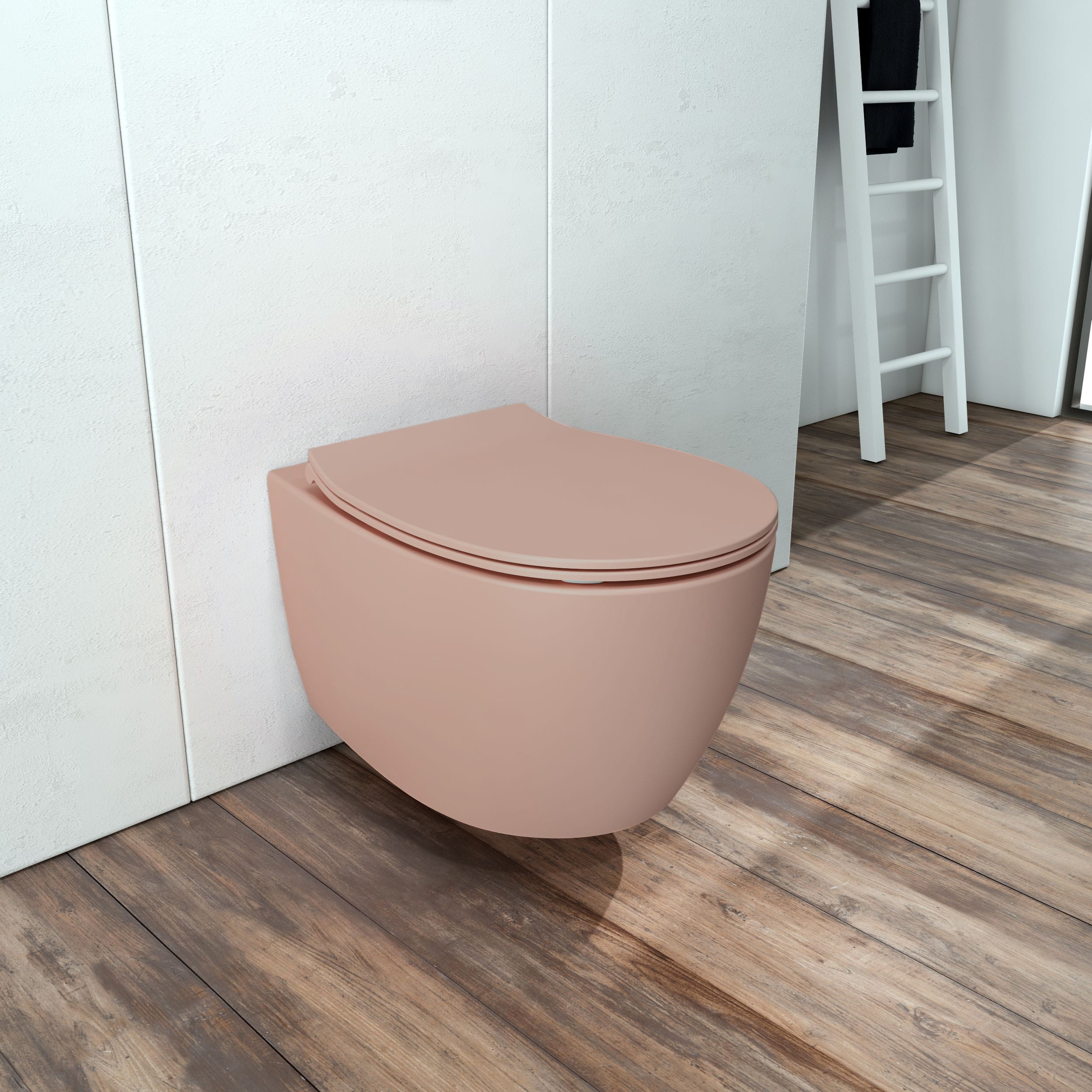 Підвісний унітаз DiMarco Dama di Venezia 510×363 овальний, з сидінням Slim Soft Close, рожевий матовий (DM2I001MS)