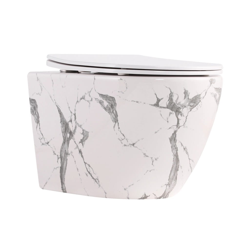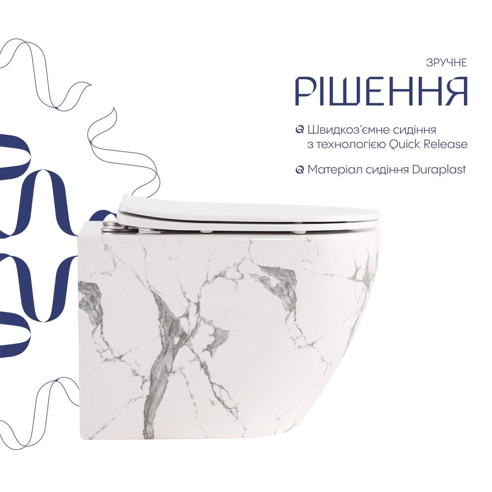 Підвісний унітаз Qtap Robin 490х365 овальний, з сидінням, мармур білий (QT13332381АSMR)