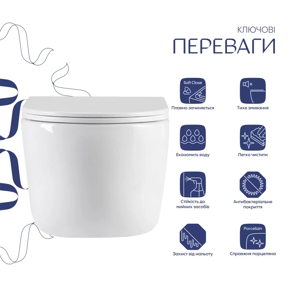 | Комплектація | Кріплення, Сидіння для унітазу, Унітаз підвісний |