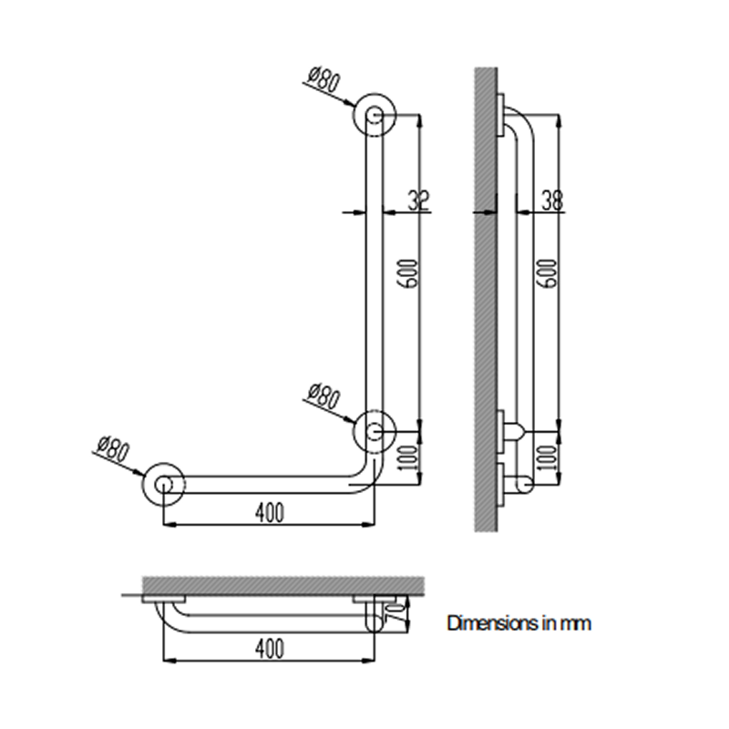 Поручень для ванни Nofer кутовий лівий, нержавіюча сталь, сатин (15159.S)