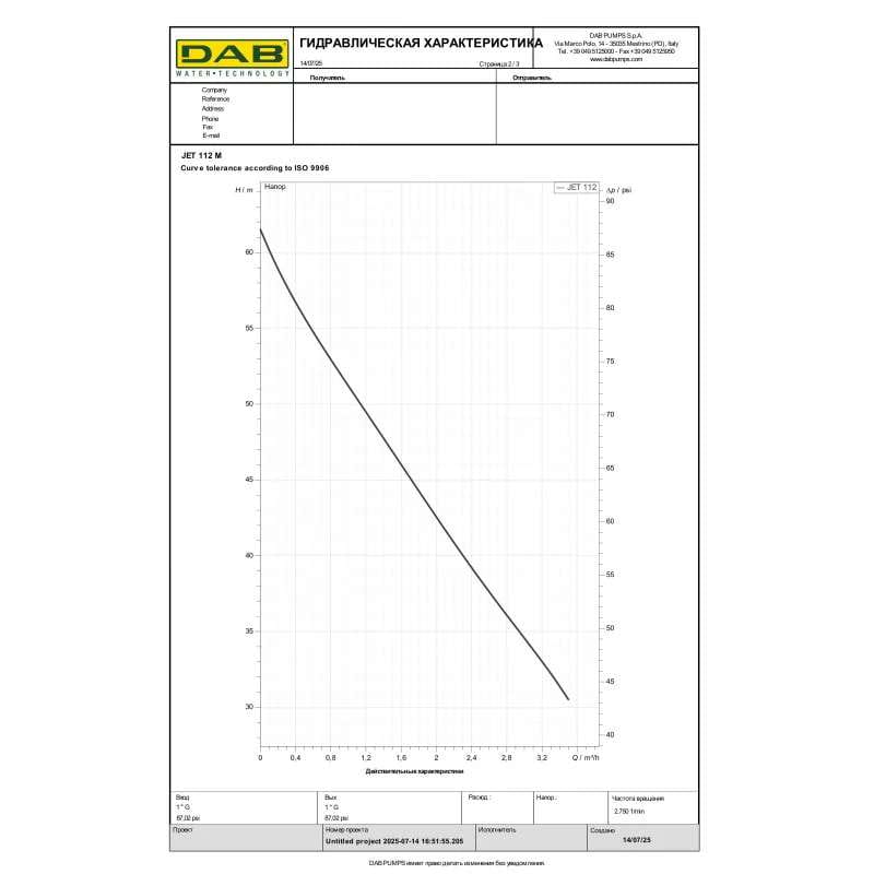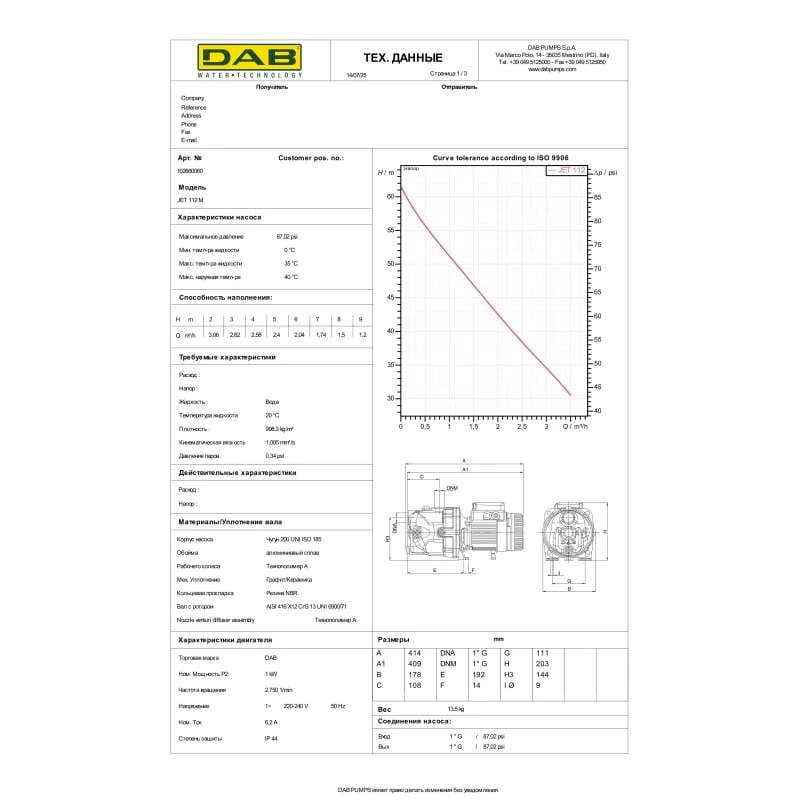 Поверхневий насос DAB Jet 112M 1 кВт H 61 м Q 60 л/хв відцентровий (102660060)
