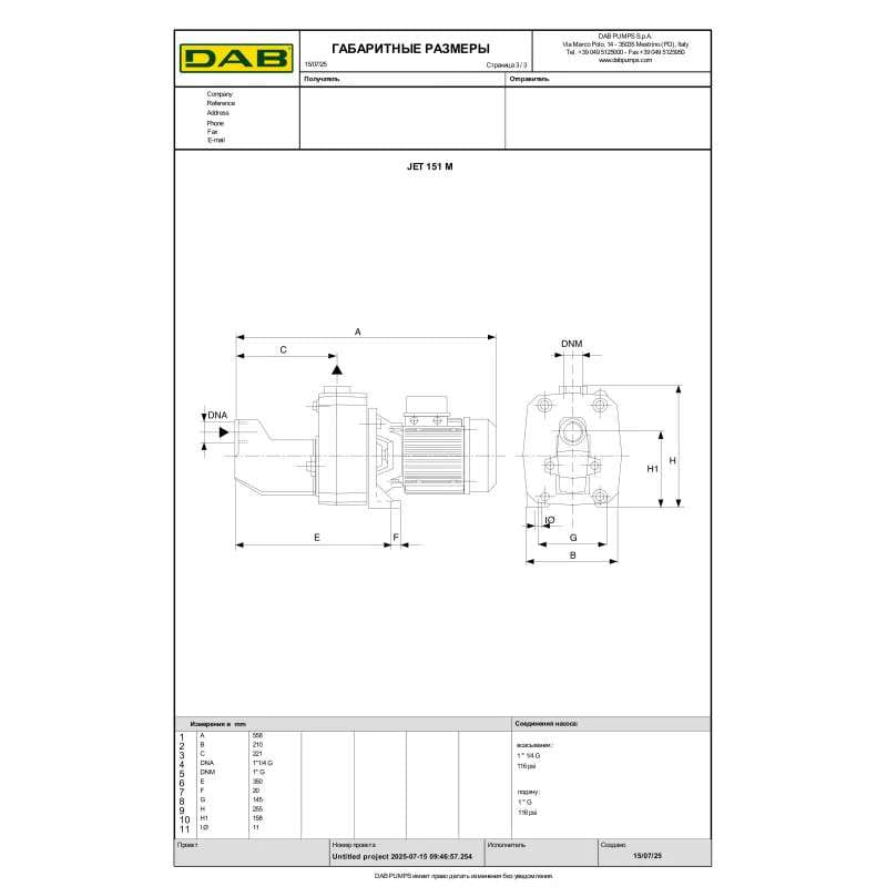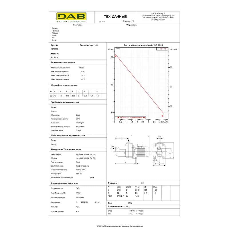 Поверхневий насос DAB Jet 151M 1,1 кВт H 61 м Q 71 л/хв відцентровий (102160062)