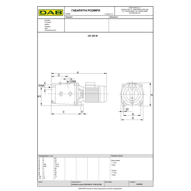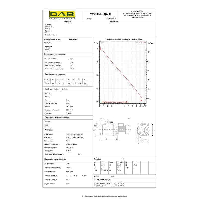 Поверхневий насос DAB Jet 200M 1,5 кВт H 41 м Q 173 л/хв відцентровий (102160142)