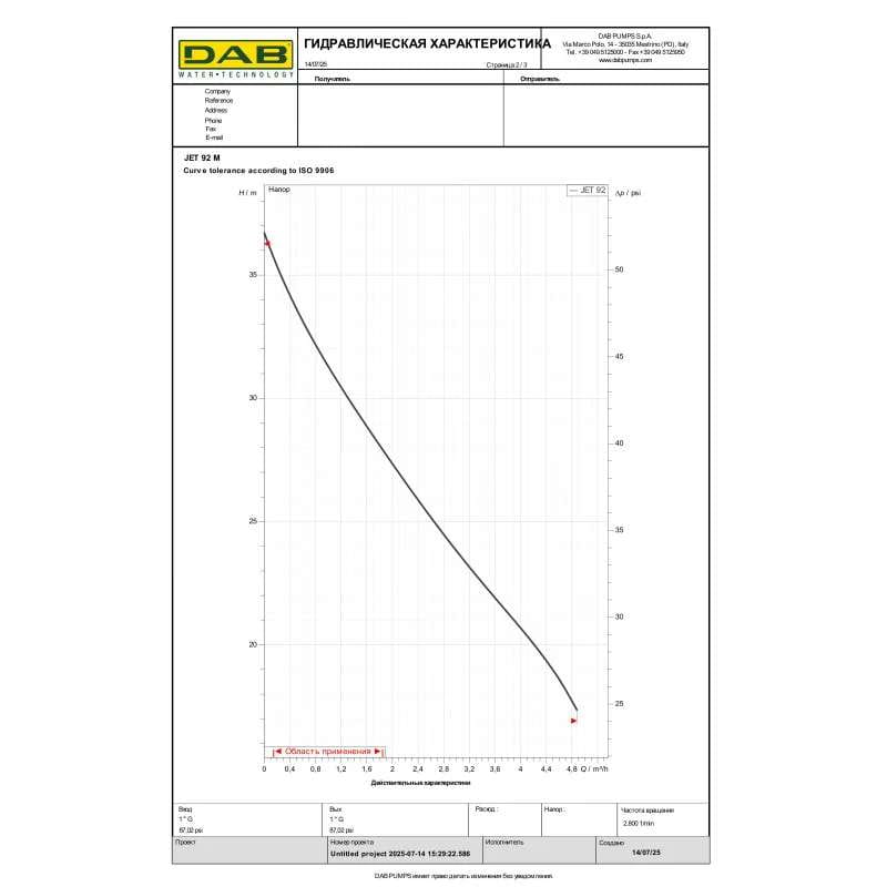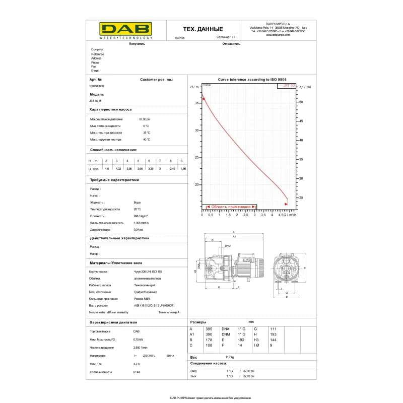 Поверхневий насос DAB Jet 92M 0,75 кВт H 37 м Q 80 л/хв відцентровий (102660080H)