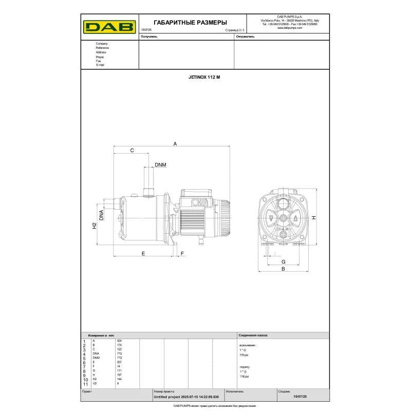 Поверхневий насос DAB Jetinox 112M 1 кВт H 61 м Q 56 л/хв відцентровий (102640060H)