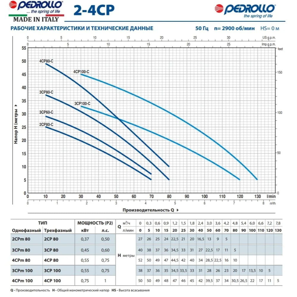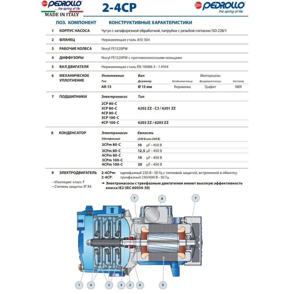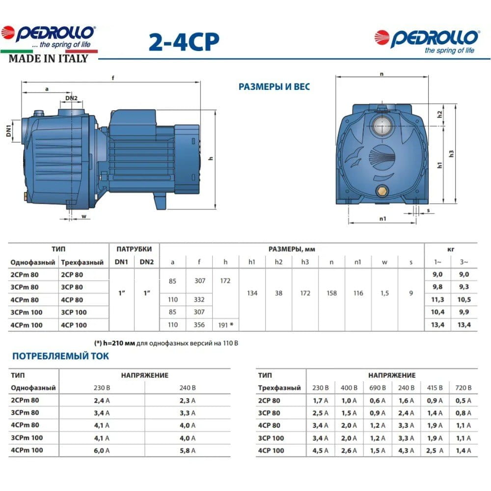 Поверхневий насос Pedrollo 3CPm 80 450 Вт H 38 м Q 80 л/хв відцентровий (43CPN382A1)