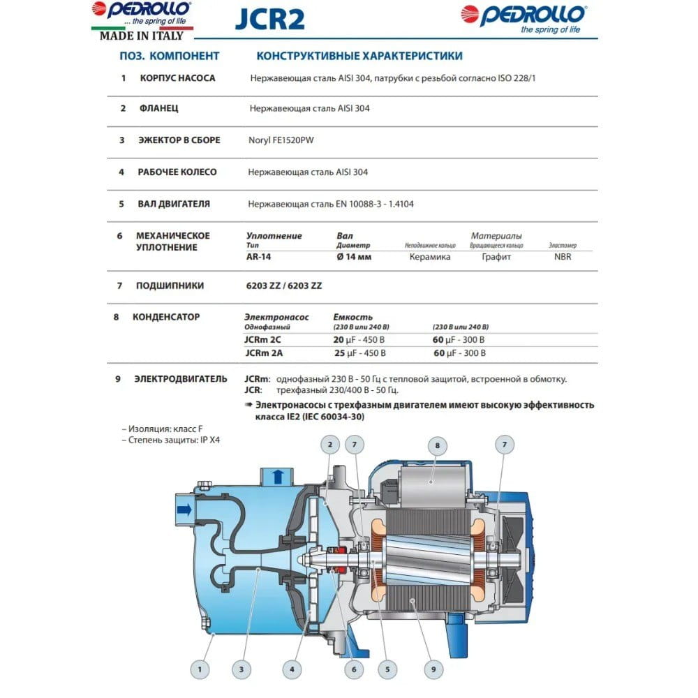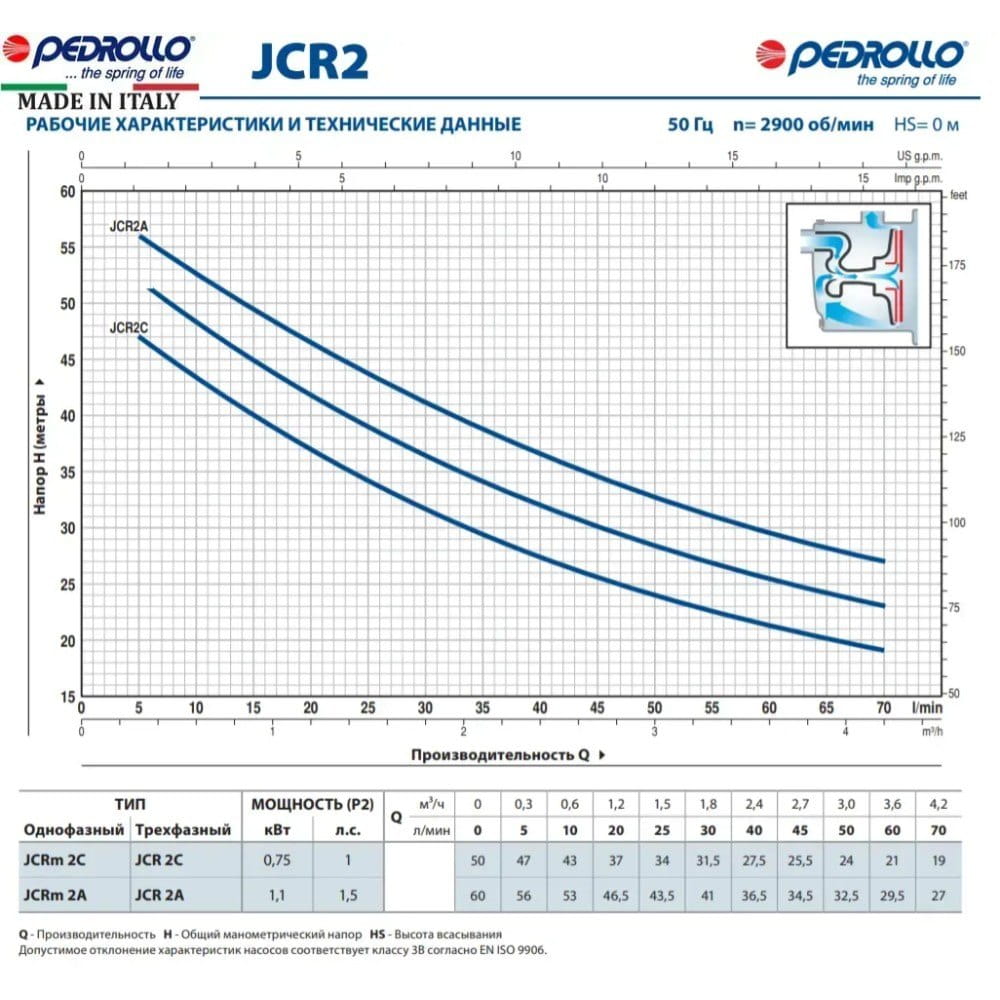Поверхневий насос Pedrollo JCRm2А 1100 Вт H 56 м Q 70 л/хв самозасмоктуючий (46JCR2A15A1)