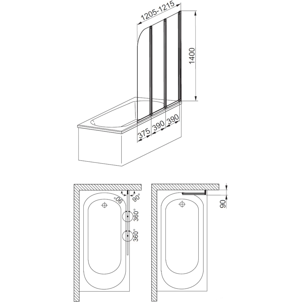 Шторка для ванної Armaform Modern 3 140×120 універсальна, скло 4 мм, хром матовий (170-06956P)