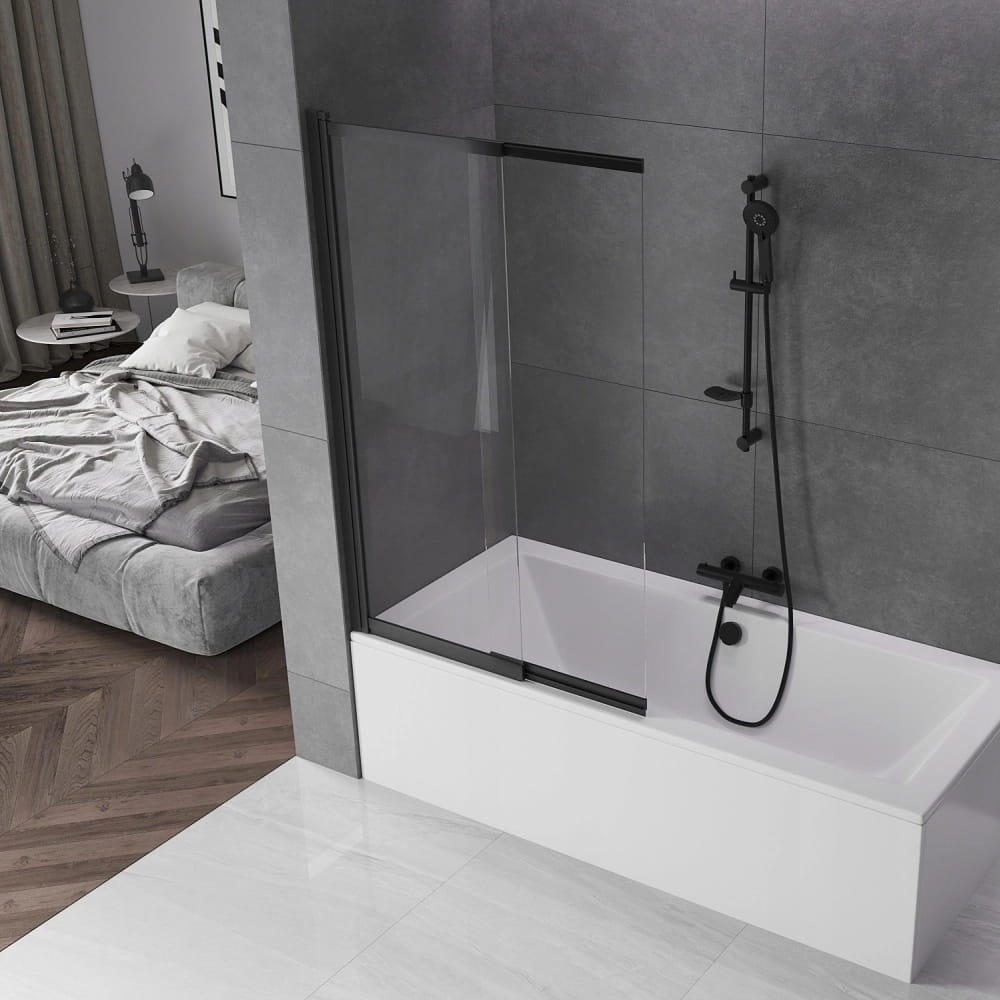 Шторка для ванної Armaform Novum 140×105 універсальна, скло 6 мм, чорна (170-32500B)