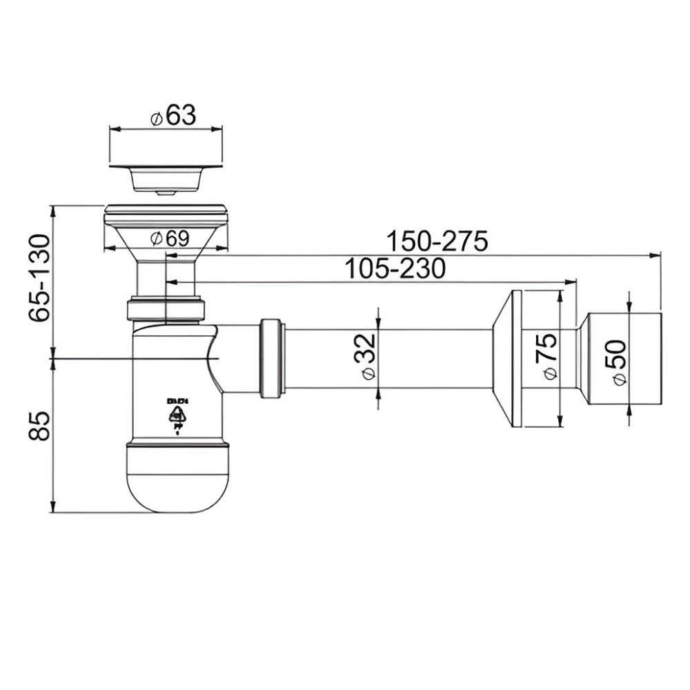 | Диаметр выпуска в канализацию, мм | 32, 50 |