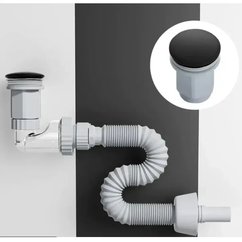 Сифон для раковини VBI 1 1/4″ з донним клапаном, чорний (VBI-059101BL)