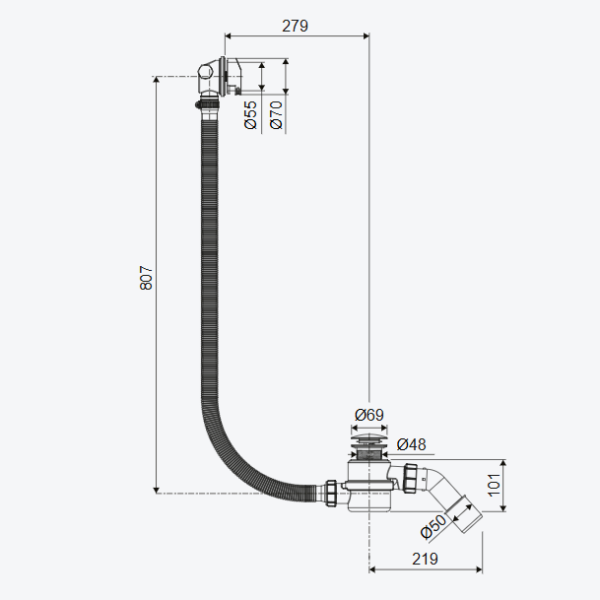 Сифон для ванни Excellent Hover пластик, білий + донний клапан чорний (ARIN.3410BL)
