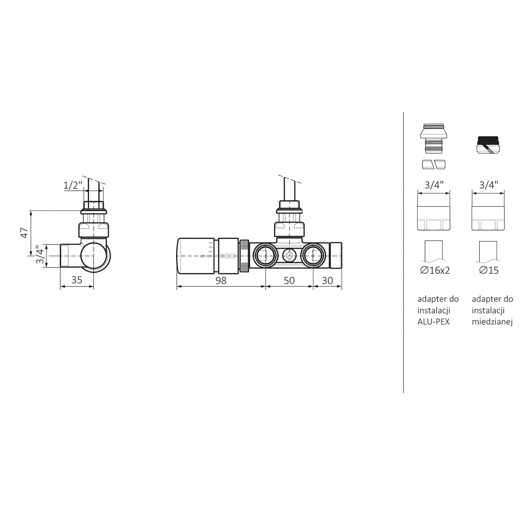 Термостатичний комплект Carlo Poletti для рушникосушки, хром (лівий)