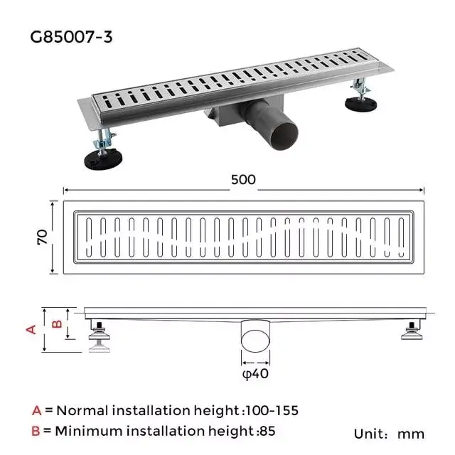 Трап для душу Gappo G85007-3 500 мм нержавіюча сталь, сірий