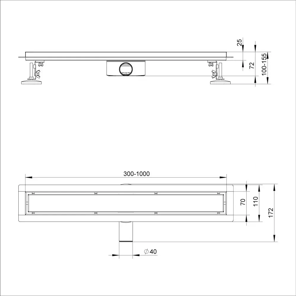 | Особливість | Поворотний сифон, Прихований, Регулювання висоти, Щілинний злив |