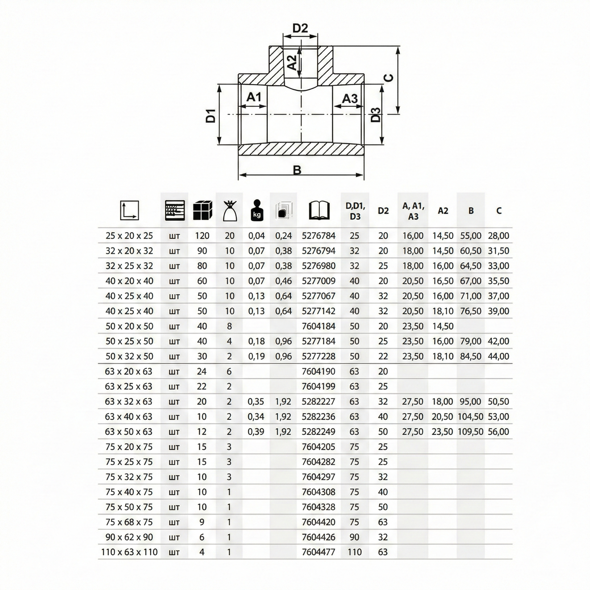 | Диаметр трубы, мм | 90x32x90 |
