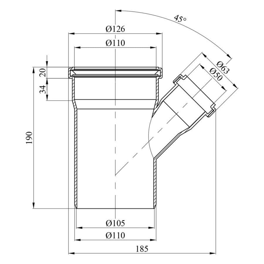 Трійник внутрішньої каналізації Rozma 100×50мм 45° (CV017950)