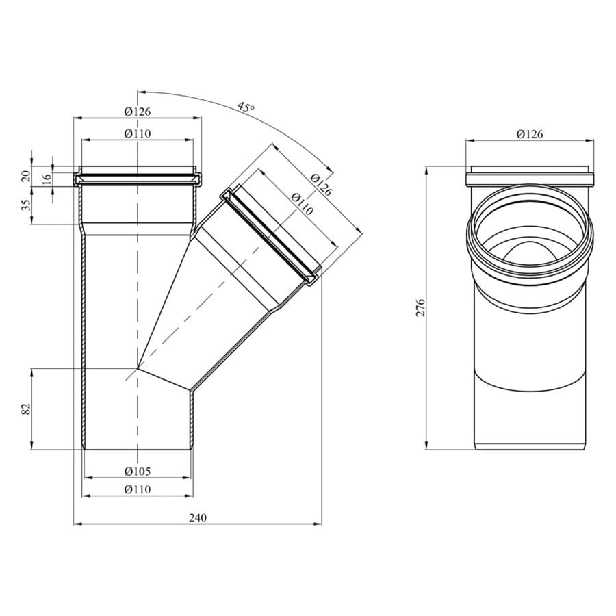 Трійник зовнішньої каналізації Rozma 110х110мм 45° (CV029133)