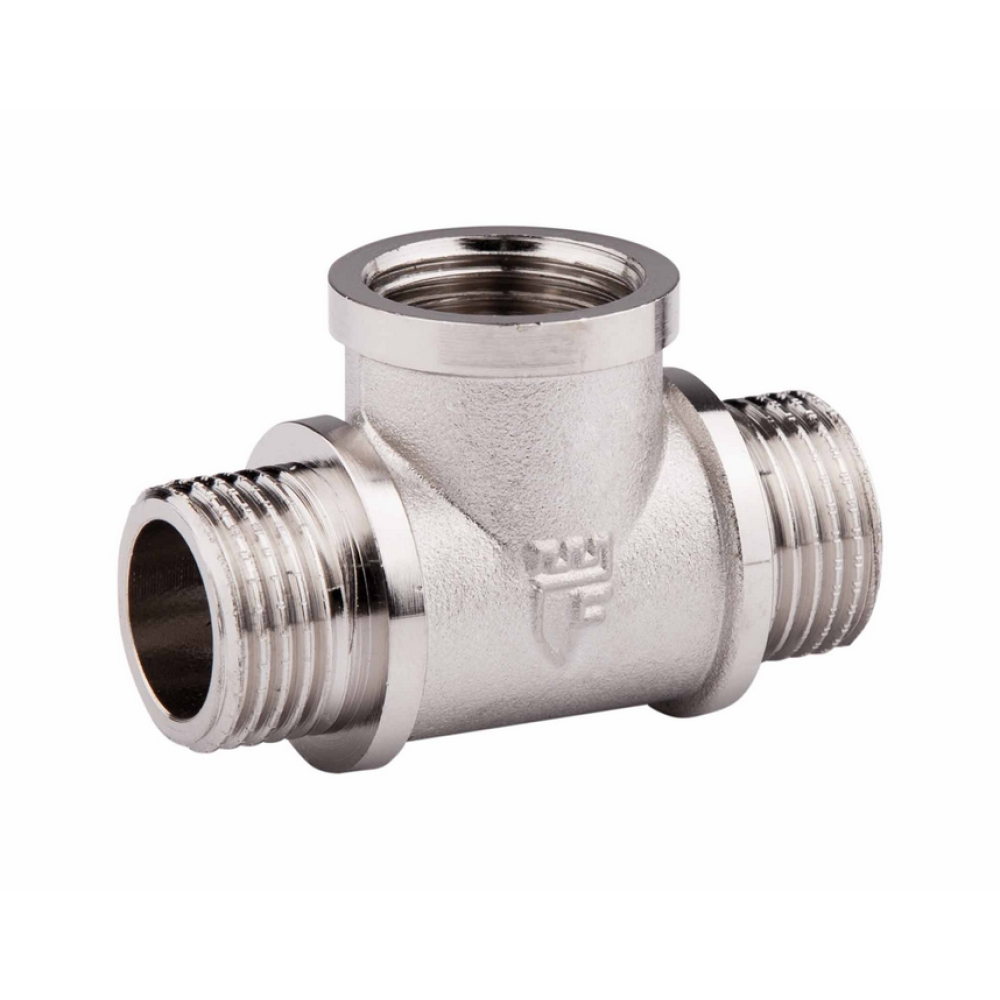 Трійник SD Forte 1/2″ ВНН з нікельованим покриттям застосовують для приєднання труб до основної магістралі під кутом 90 градусів, і являє собою об’єднані порожнисті циліндри з латуні.