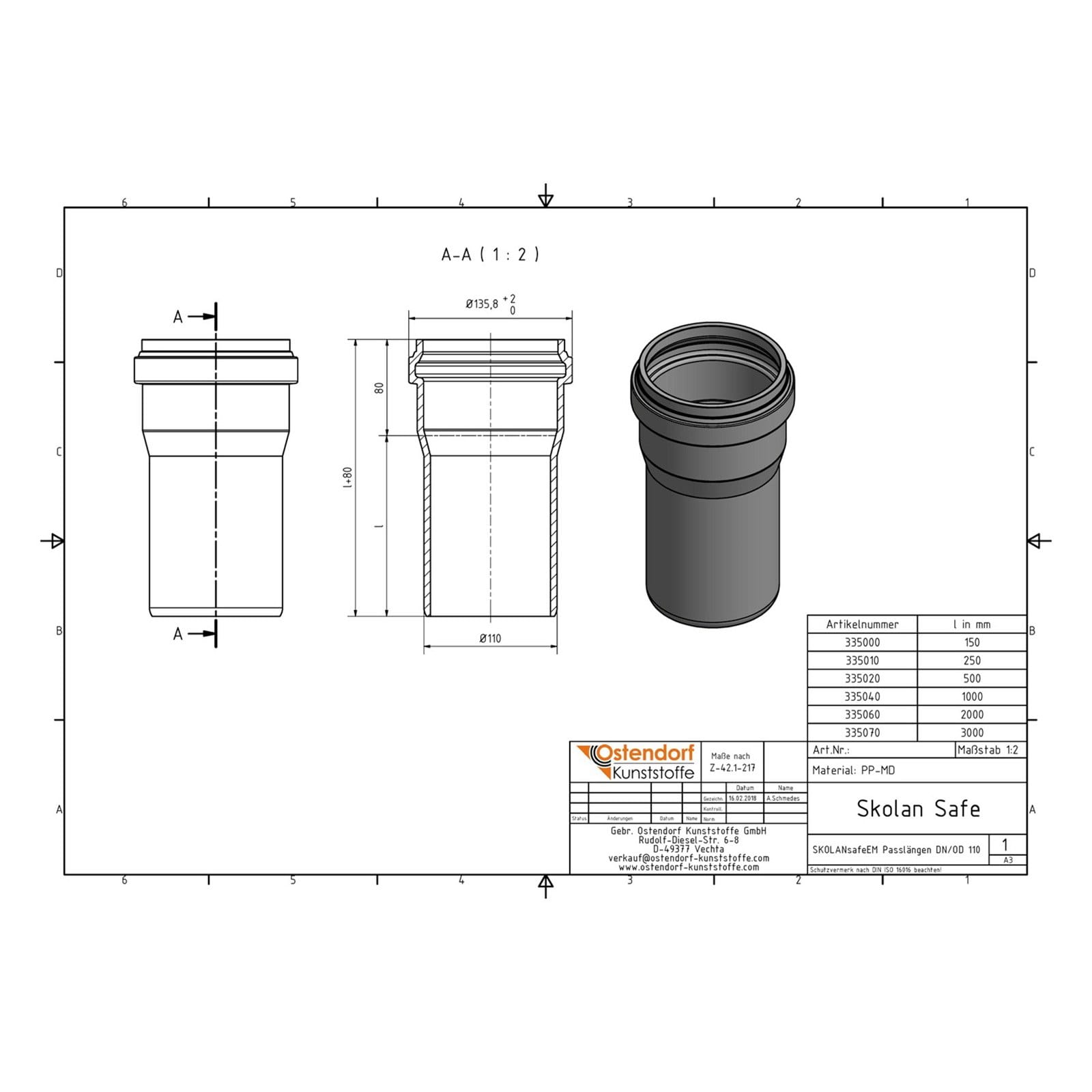 Труба каналізаційна Ostendorf Skolan Safe 110×2000мм внутрішня (335060)
