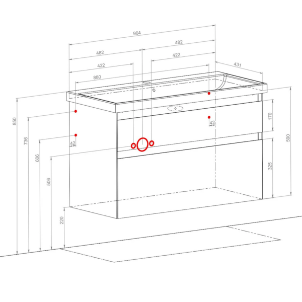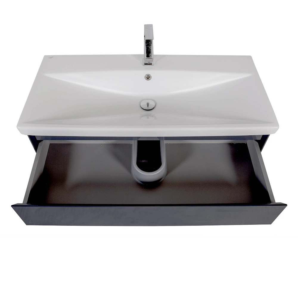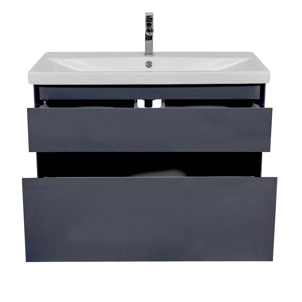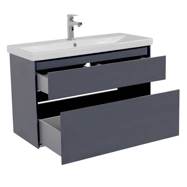 Тумба у ванну Aqua Rodos Еліт 1000х450 підвісна, з умивальником CeraStyle Еліт 100, графіт глянцевий (АР000049079)