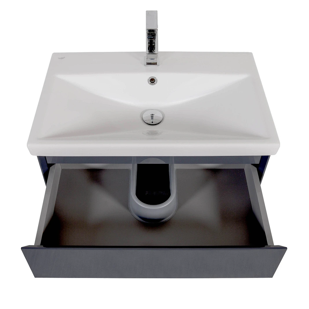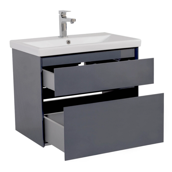 Тумба у ванну Aqua Rodos Еліт 600х450 підвісна, з умивальником CeraStyle Еліт 60, графіт глянцевий (АР000049081)