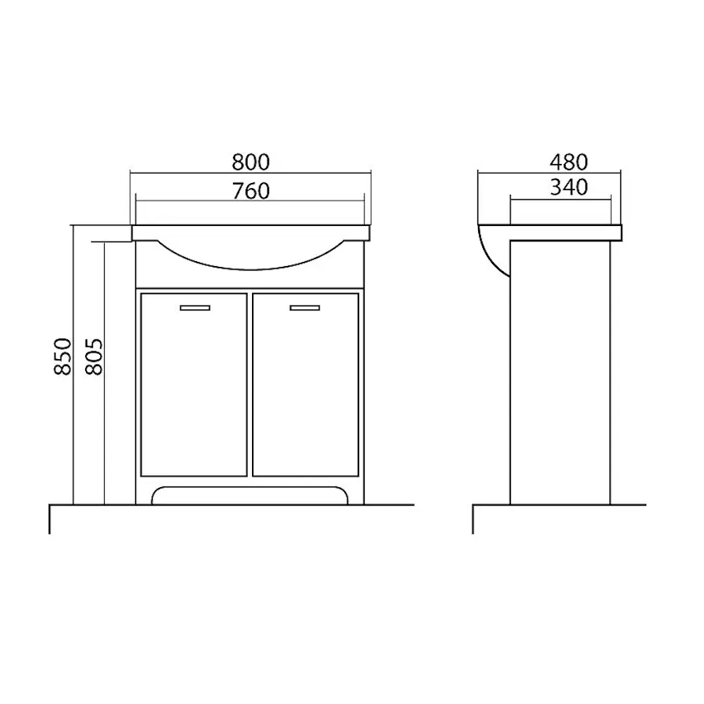 Тумба у ванну Aqua Rodos Класик 2019 800х480 підлогова, з умивальником CeraStyle New Klasik 80, біла (АР000040323)