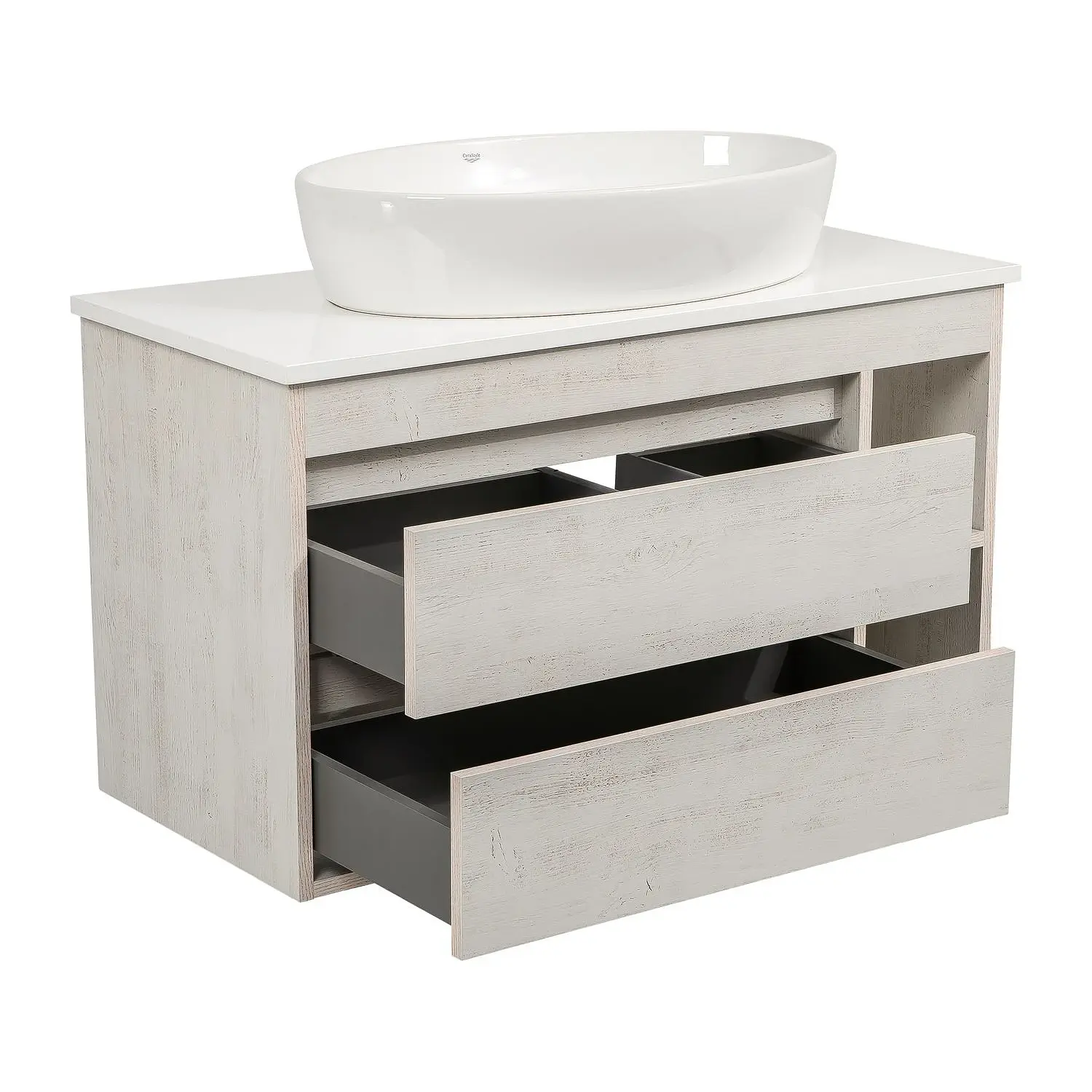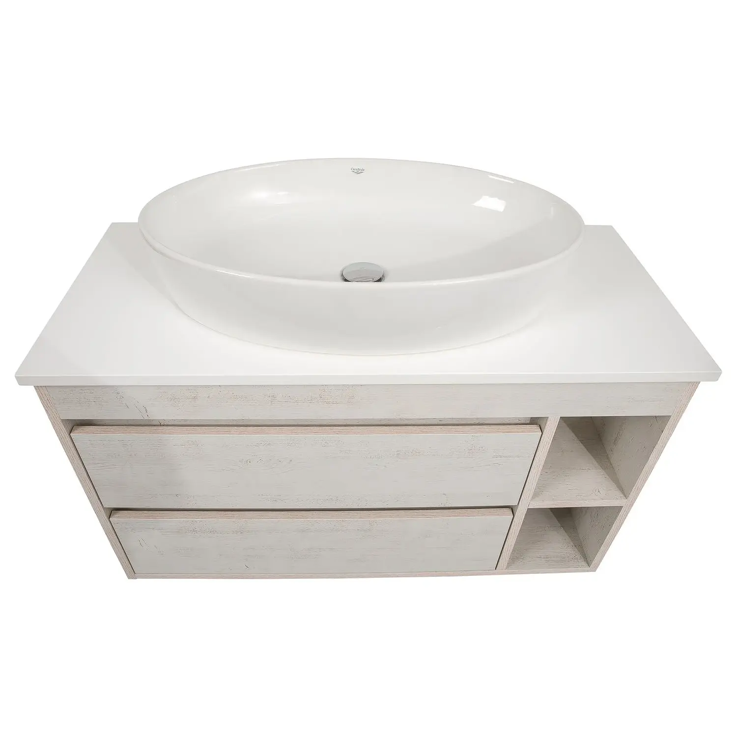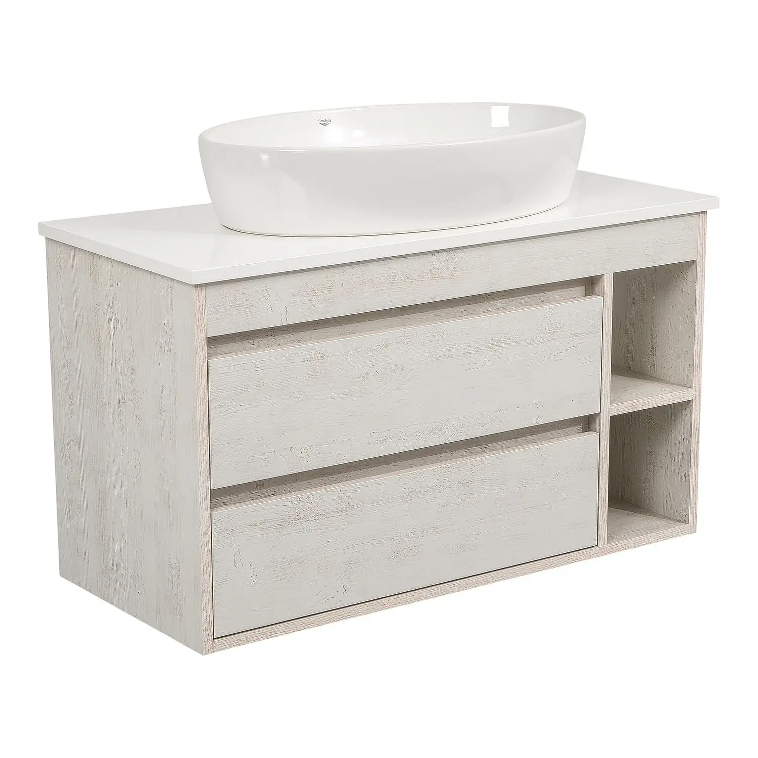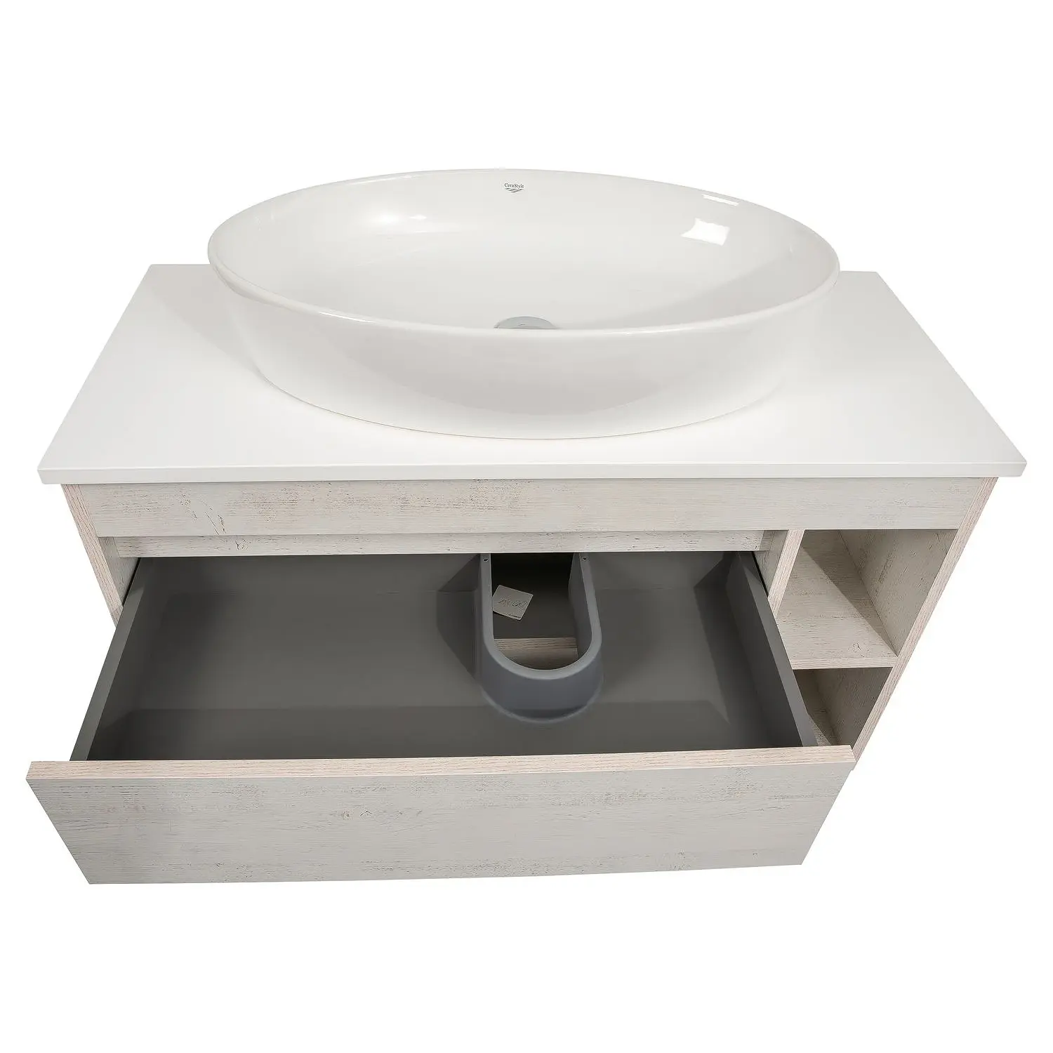 Тумба у ванну Aqua Rodos Шельф 1000х425 підвісна, з умивальником CeraStyle One 67, дерево (АР000085181)