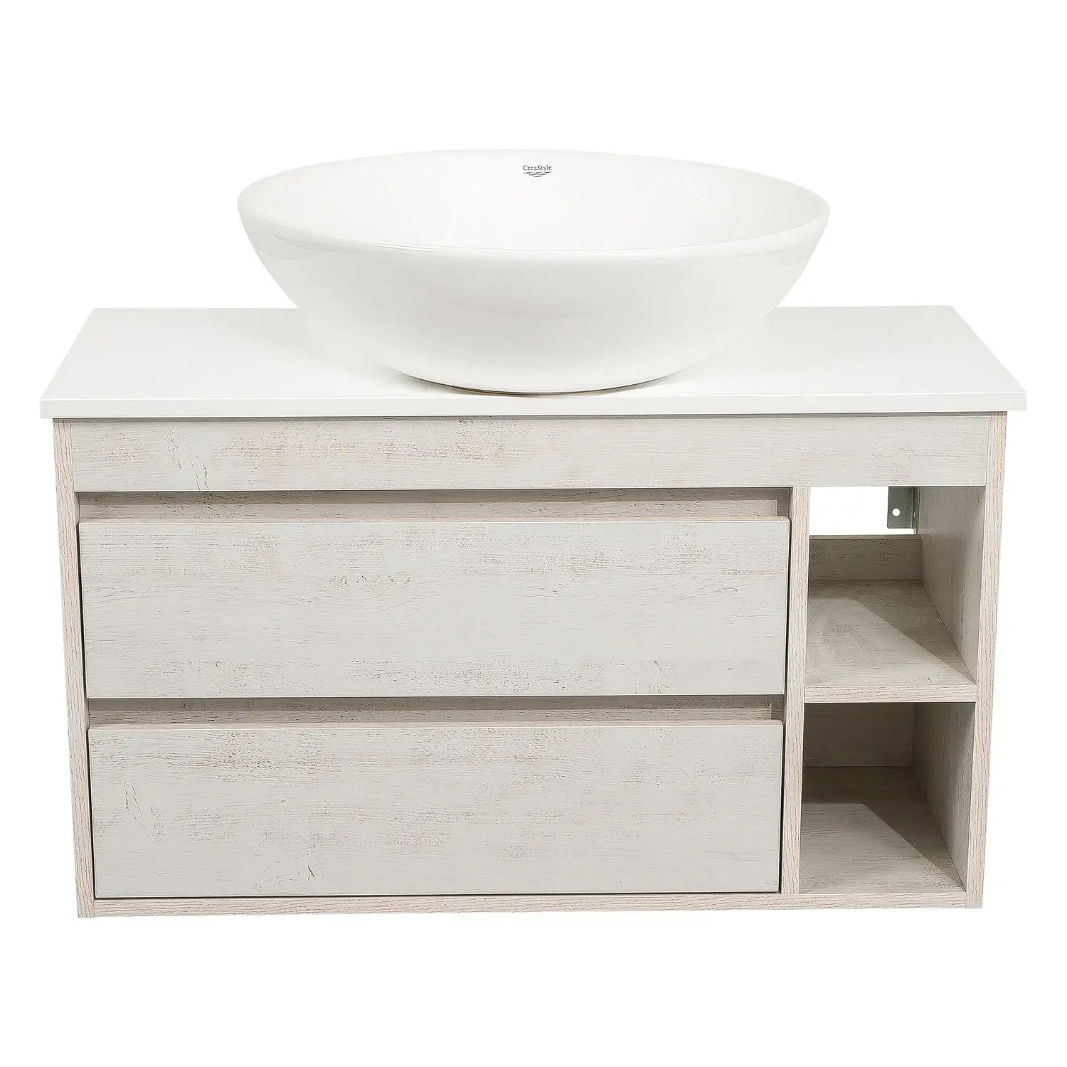 Тумба у ванну Aqua Rodos Шельф 1000х460 підвісна, з умивальником CeraStyle Zero 46, дерево (АР000085171)